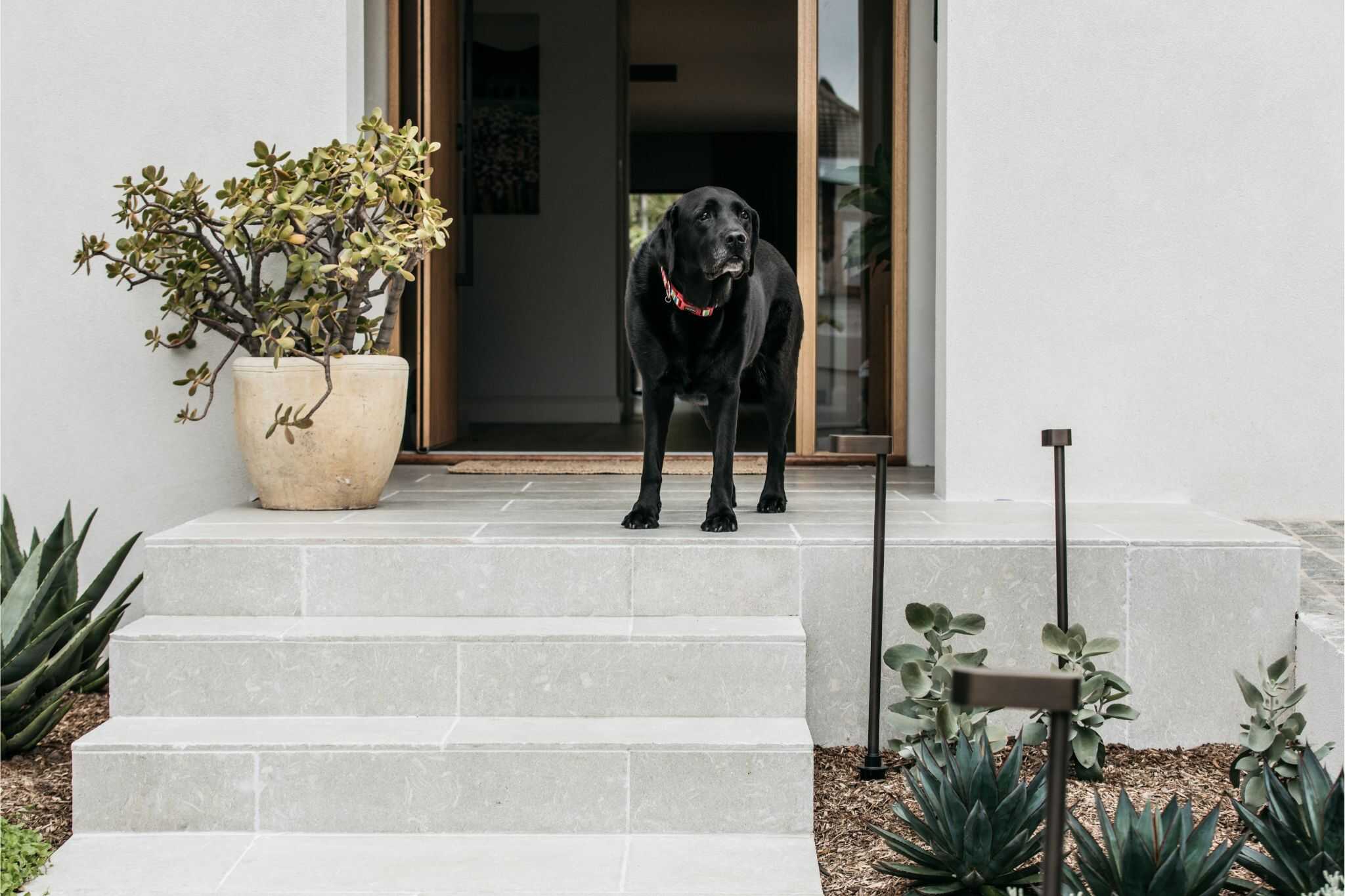In the front yard, a welcoming entrance is framed by feature planting and sculpted garden mounds, adding depth and texture. A newly installed cobblestone driveway enhances the home’s curb appeal, while the modern sawtooth front fence provides a contemporary touch, balancing openness with privacy.
